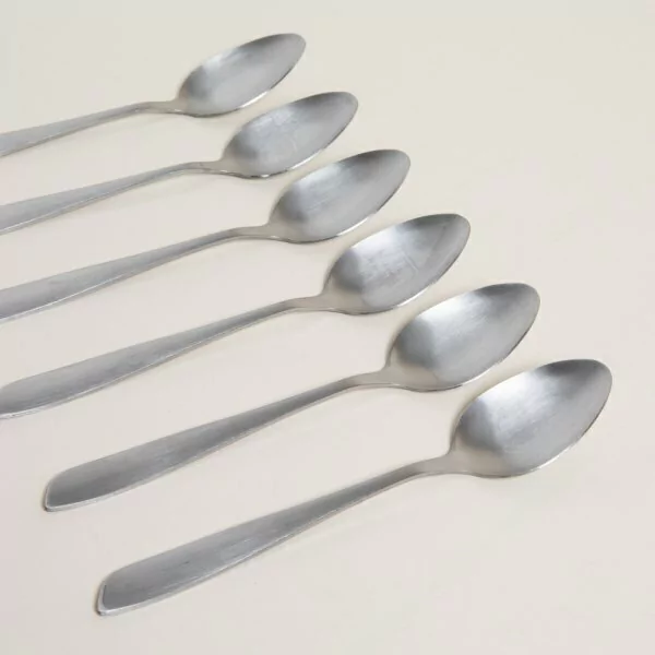 Set de 6 cucharas de color plateado en acero satinado, diseño que aporta versatilidad y elegancia.
